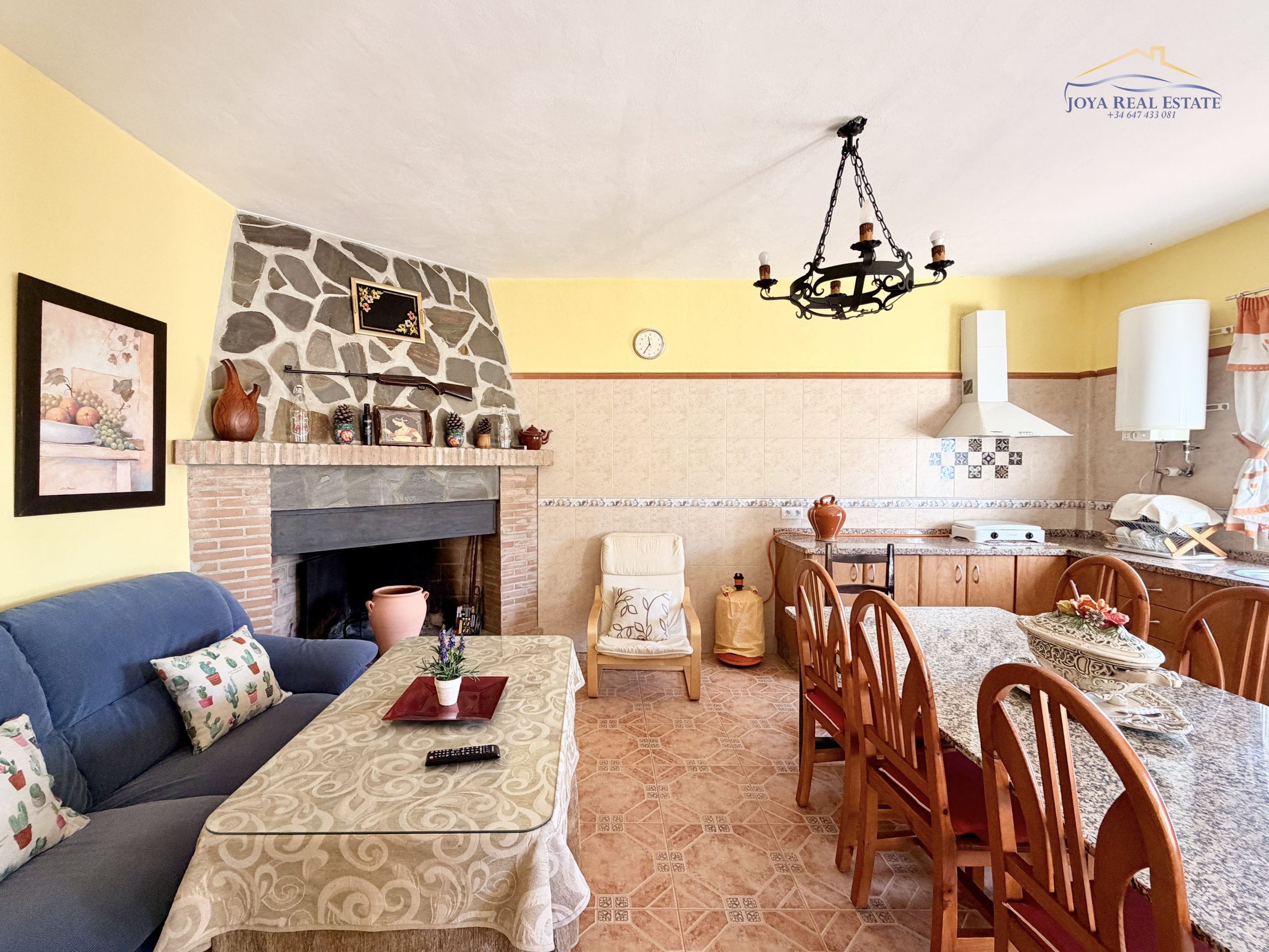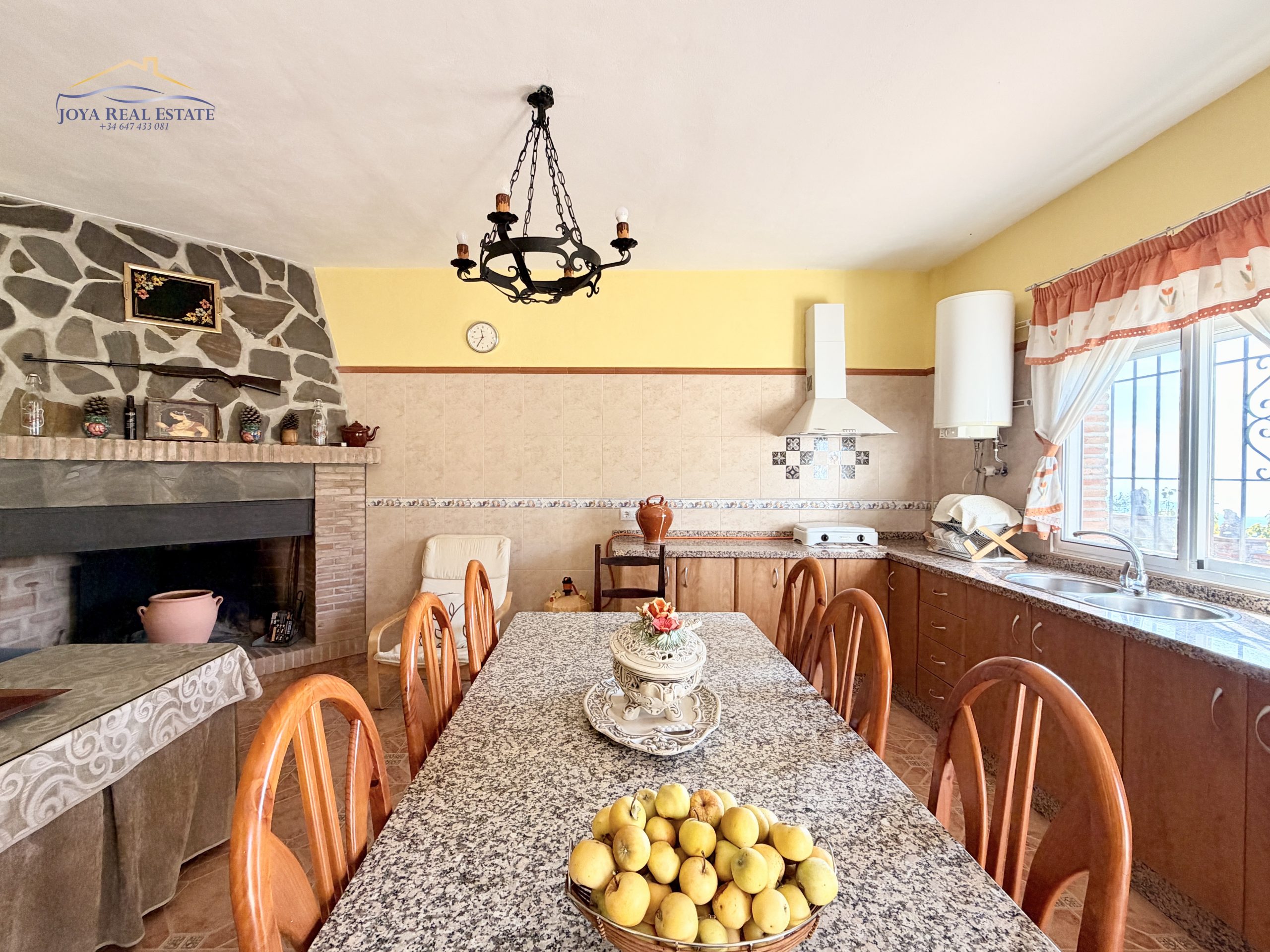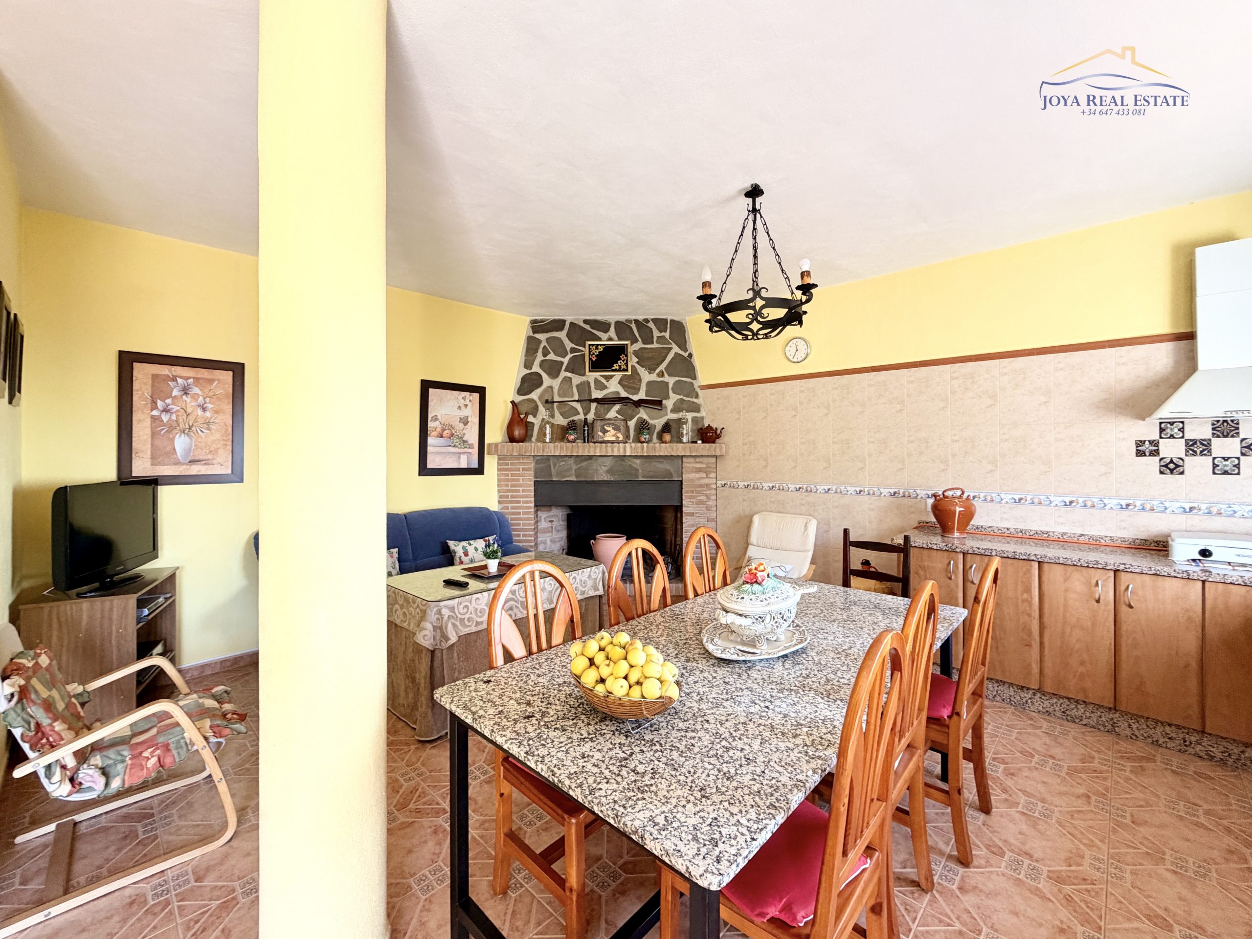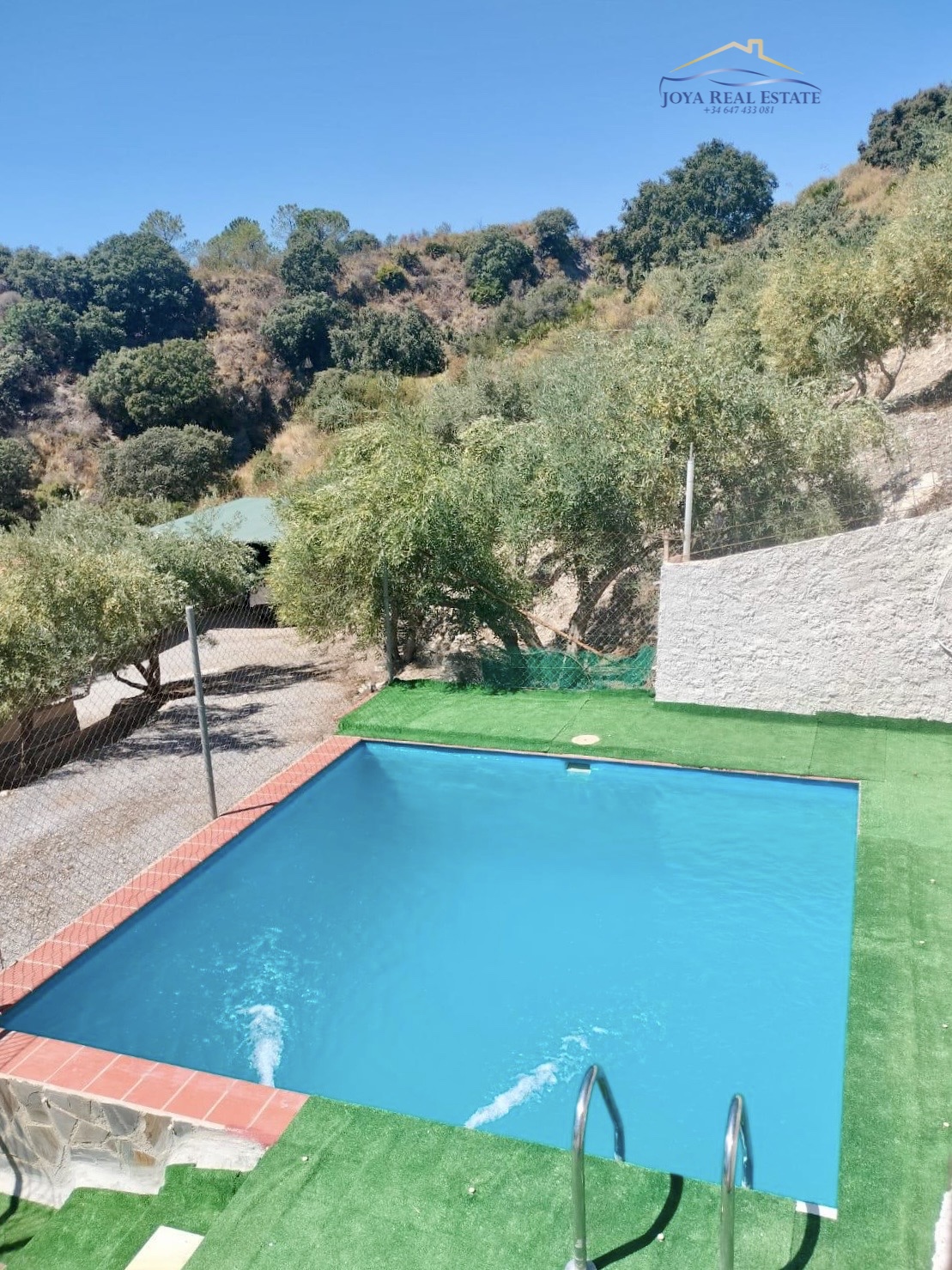 La vivienda principal, construida en 2012 y lista para entrar a vivir, ofrece 80 m² distribuidos en un salón con chimenea y cocina integrada, dos dormitorios y un baño. Desde la terraza cubierta, equipada con dos barbacoas, se disfrutan espectaculares vistas al mar y a las montañas. Frente a la casa se encuentra la piscina privada, rodeada de naturaleza, ideal para refrescarse en verano y relajarse todo el año.