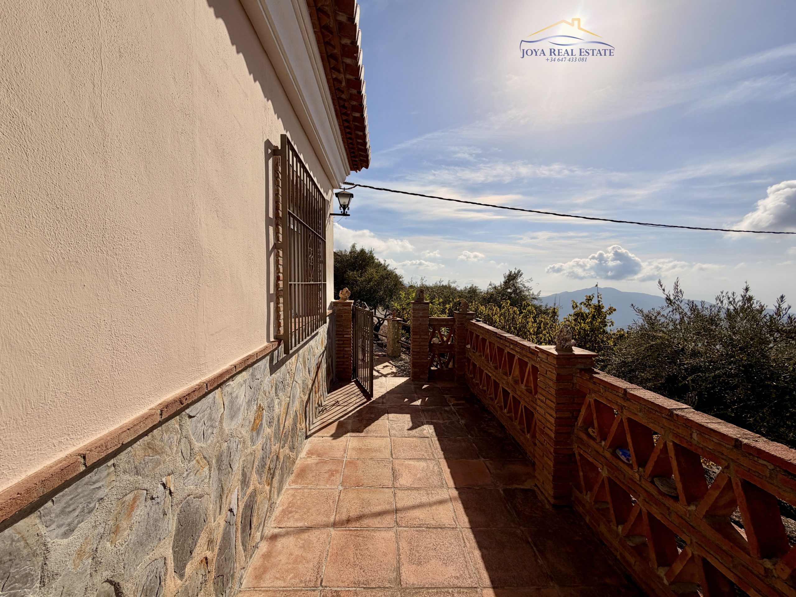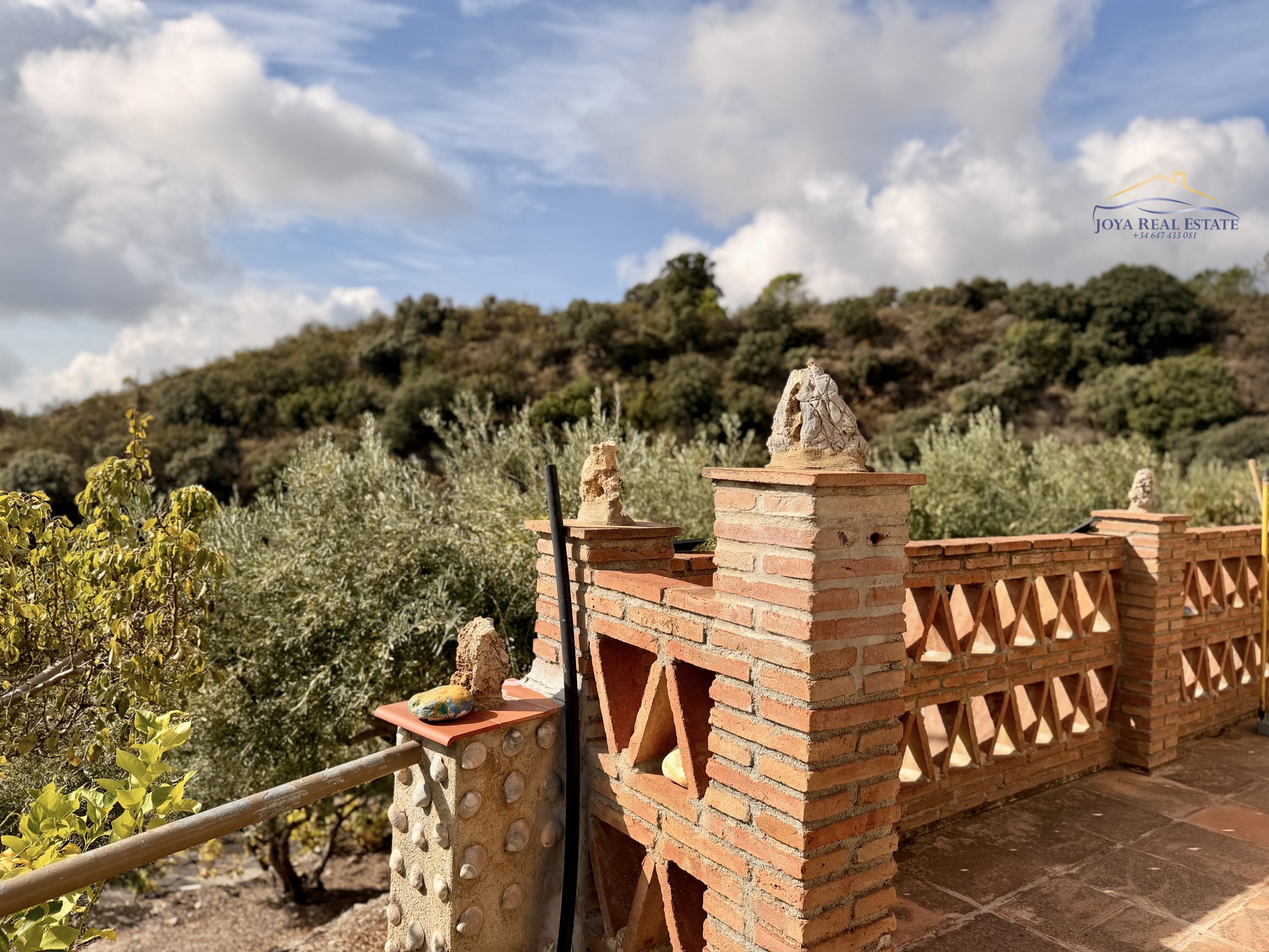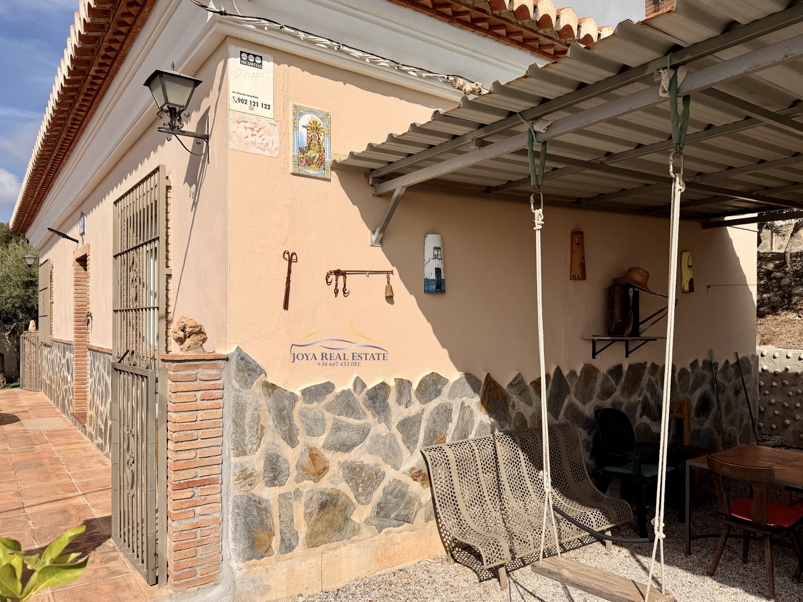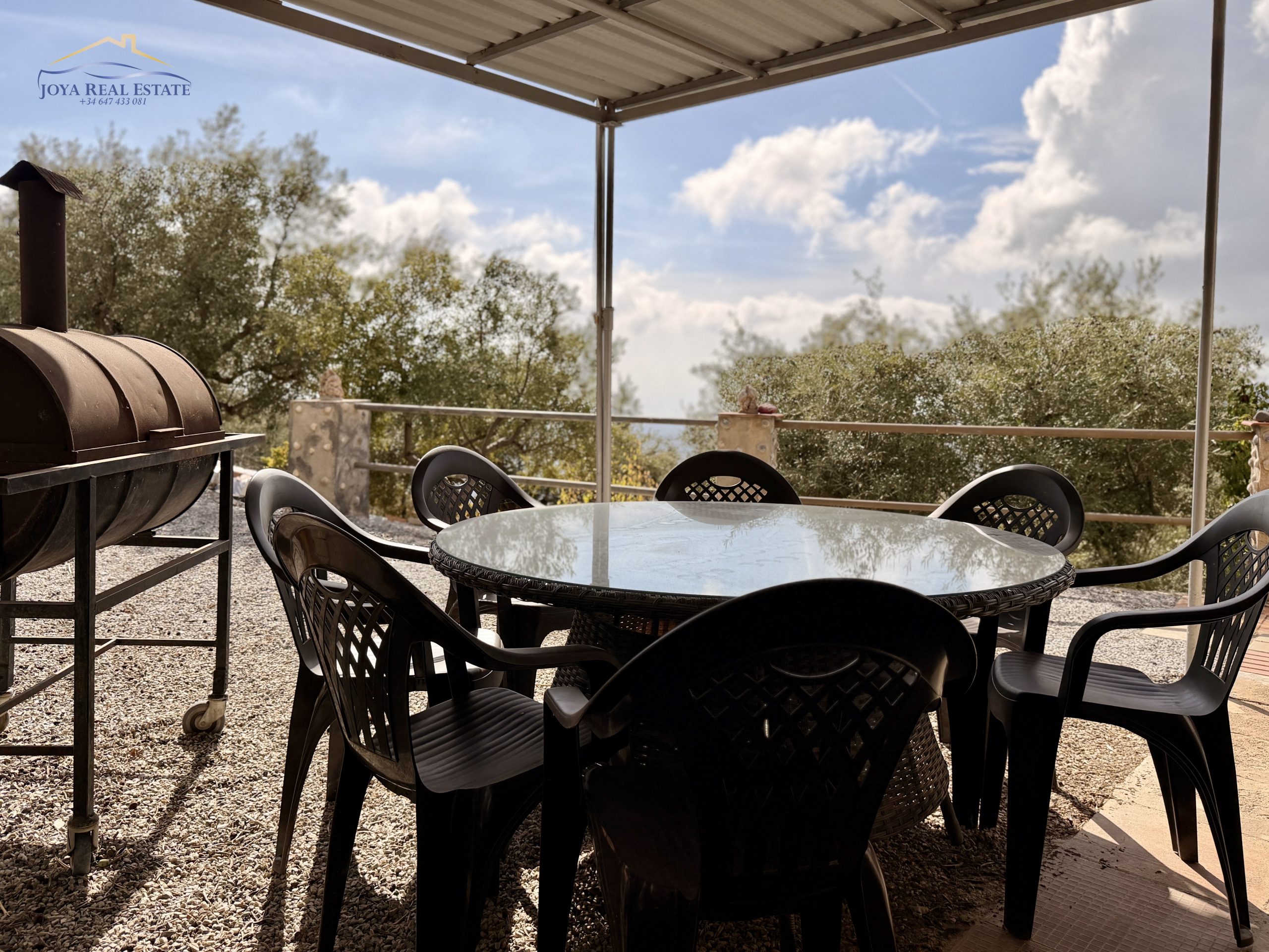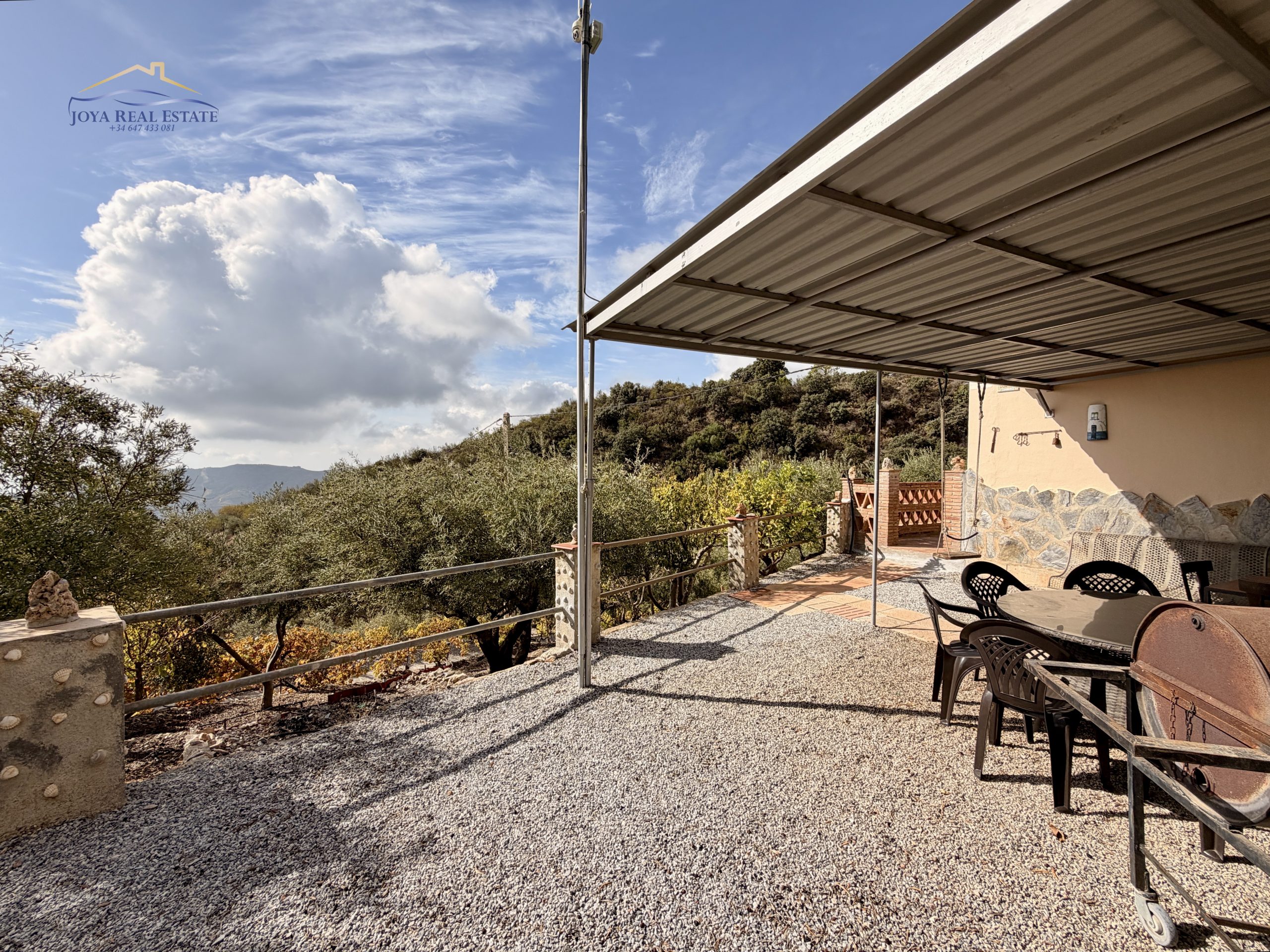 La propiedad ocupa un terreno totalmente vallado con acceso privado mediante portón automático, aparcamiento cubierto, videovigilancia y un almacén de aperos. Su tierra fértil y libre de productos químicos alberga una gran variedad de árboles frutales: manzanos, higueras, guayabos, nísperos, melocotoneros, parras, naranjos y olivos. Estos últimos permiten elaborar tu propio aceite ecológico con etiqueta personalizada, una experiencia única y auténtica.